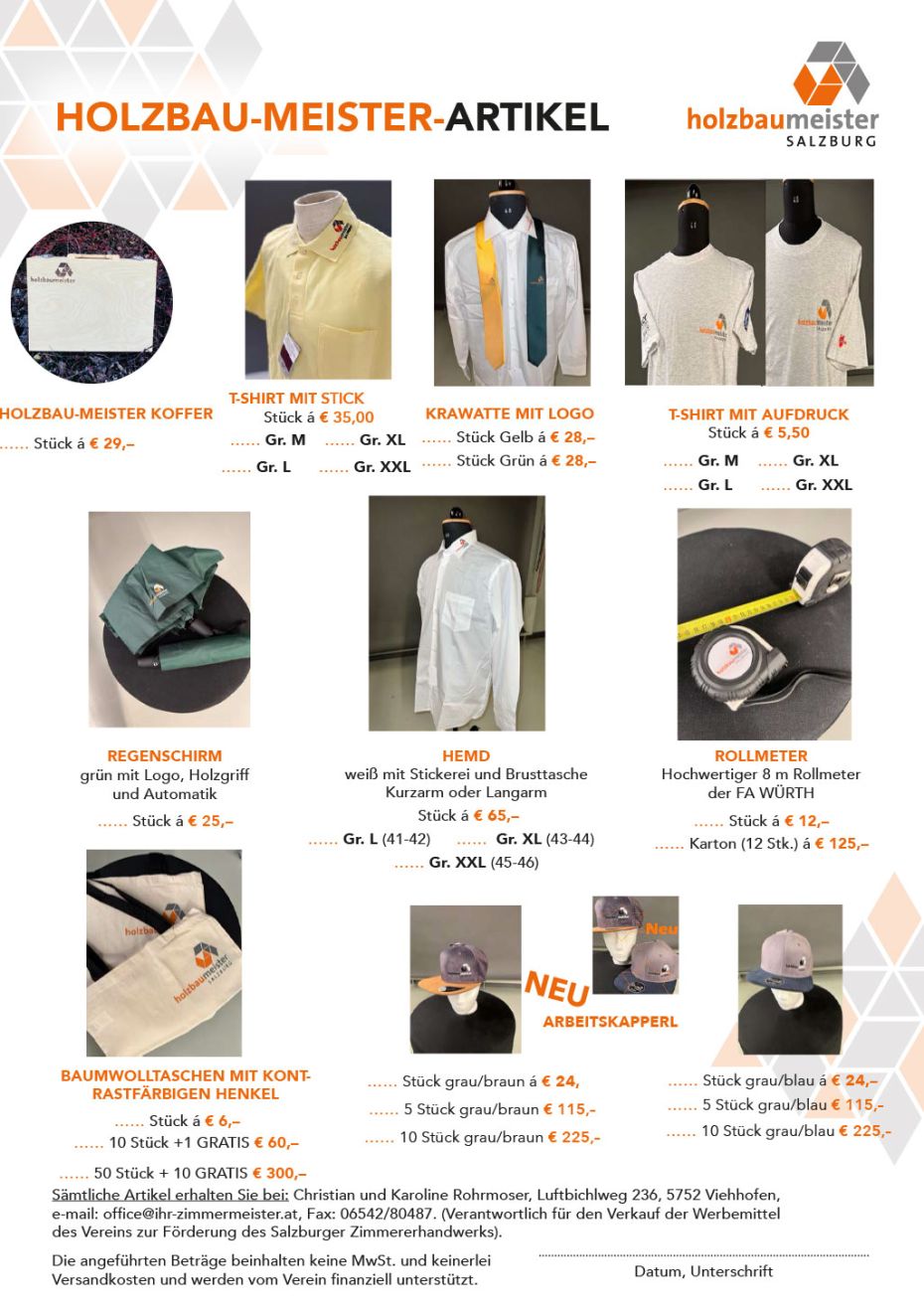 (Verantwortlich für den Verkauf der Werbemittel des Vereins zur Förderung des Salzburger Zimmererhandwerks).