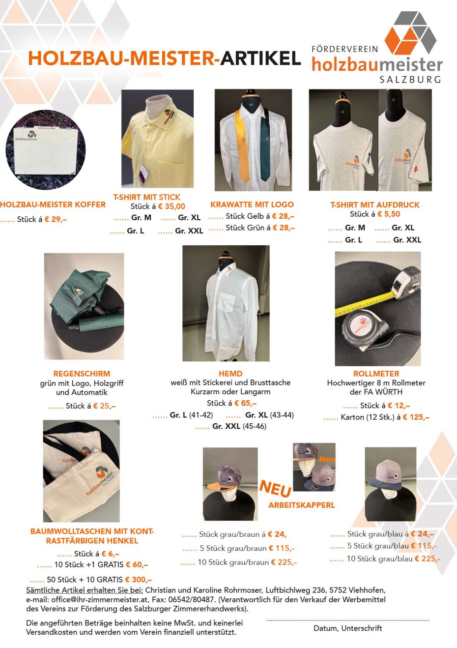 Die angeführten Beträge beinhalten keine MwSt. und keinerlei Versandkosten und werden vom Verein finanziell unterstützt.